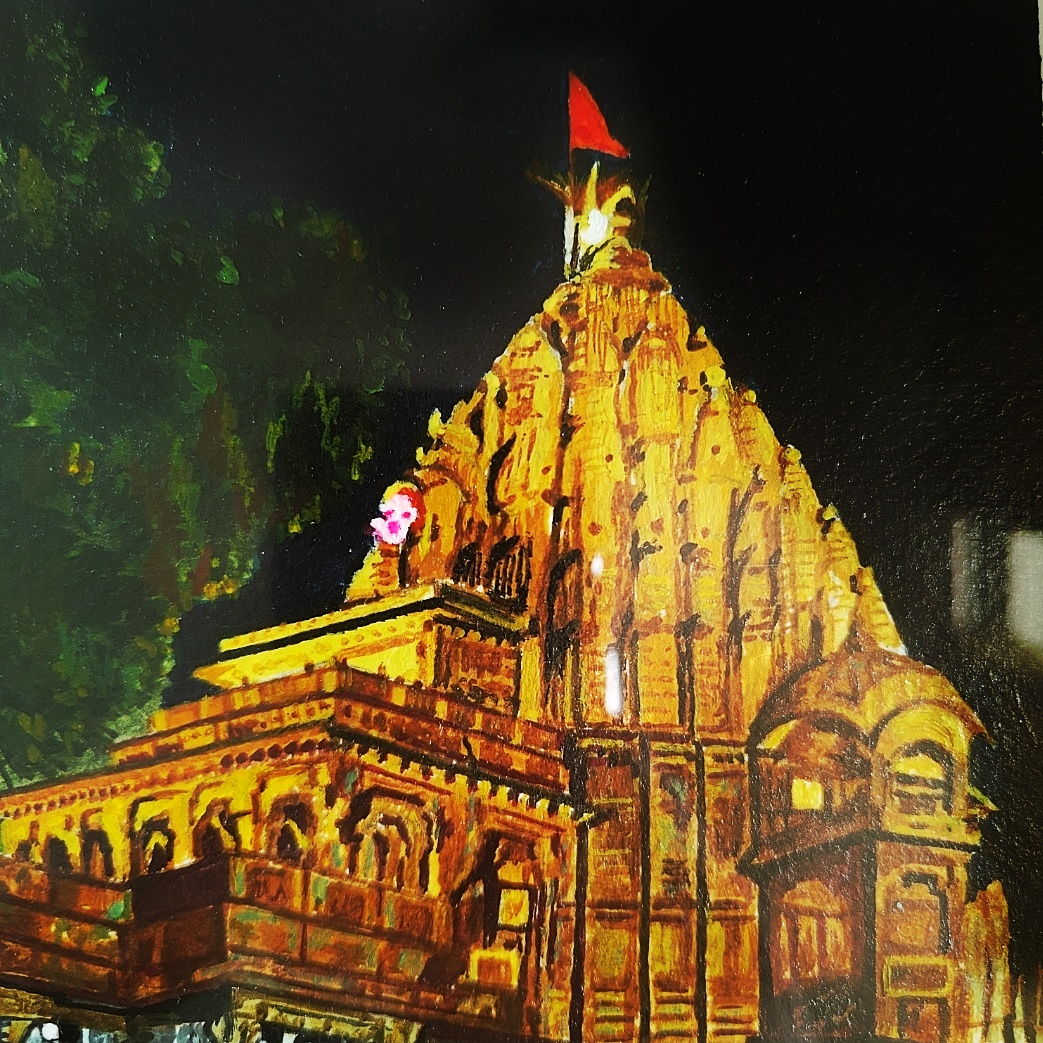 Dedicated to the only south-facing Jyotirlinga in India, this painting reflects the power, mystery, and sanctity associated with Mahakal – the Lord of Time.
