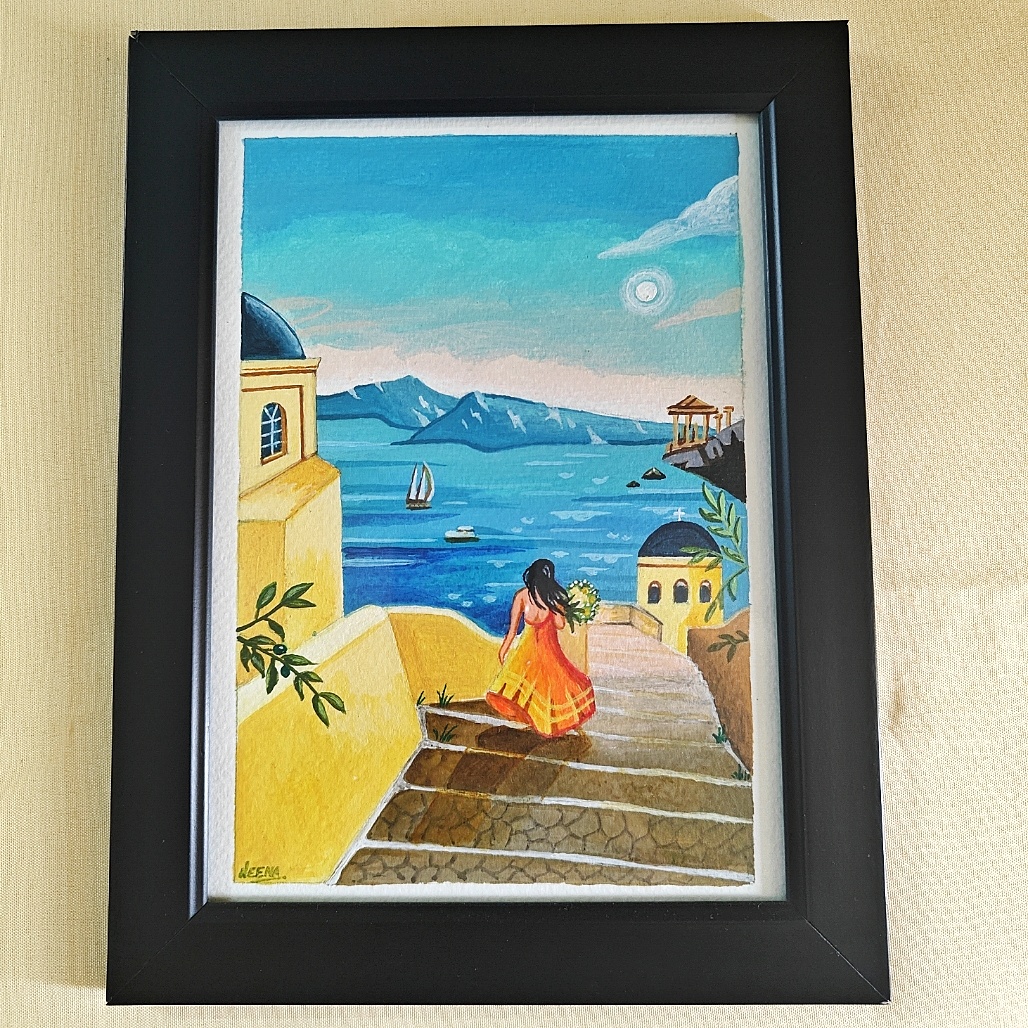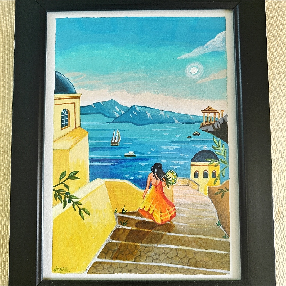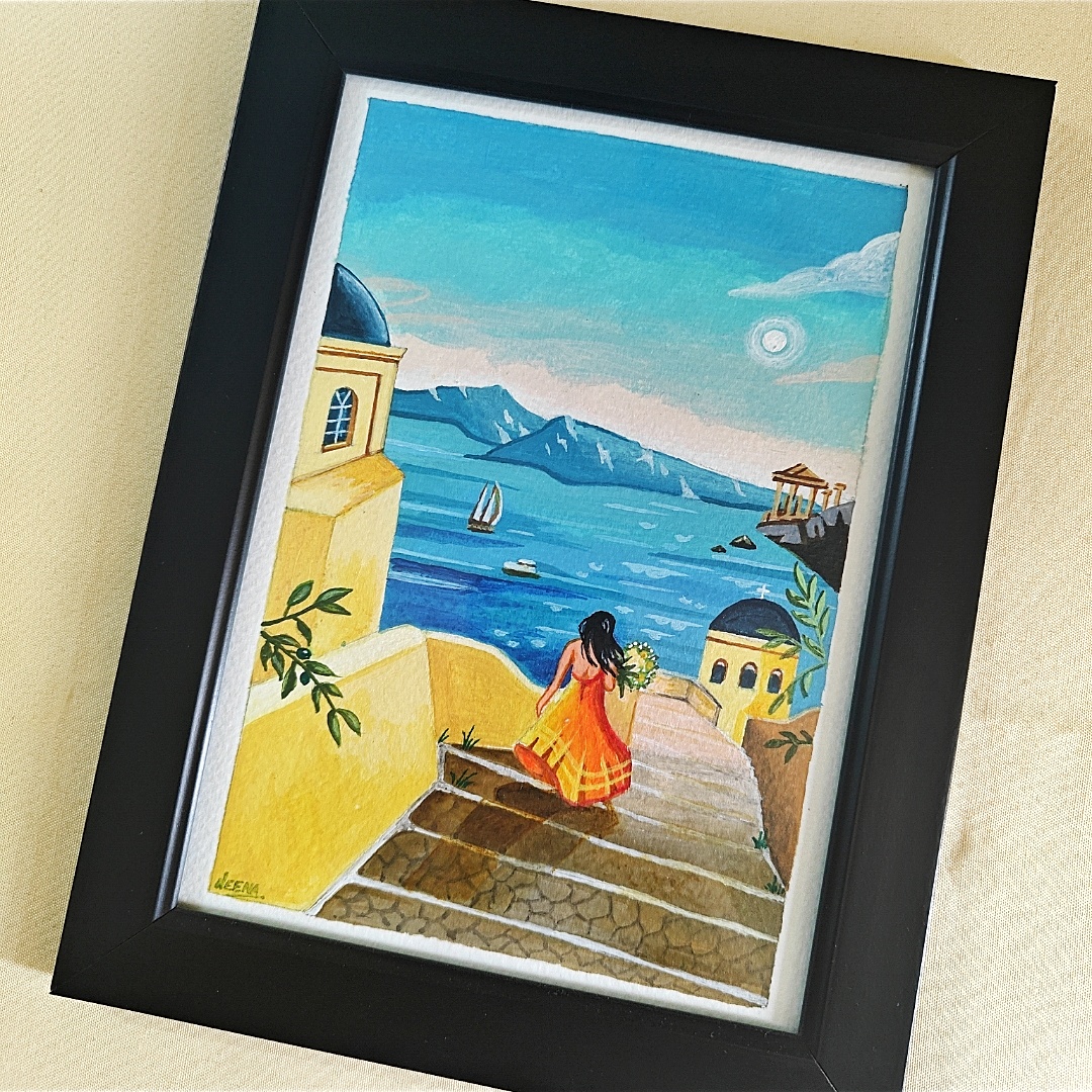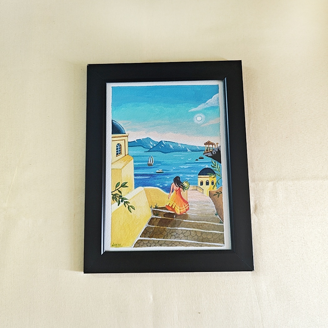 Hand-Painted A5 Framed Acrylic Artwork Inspired by Mediterranean Beauty