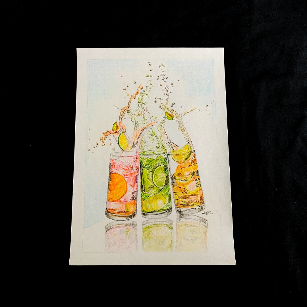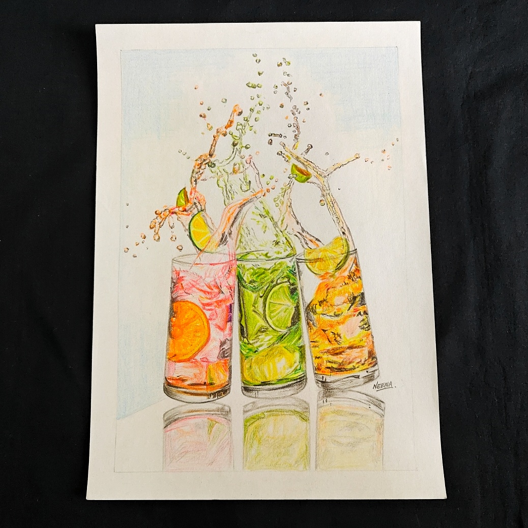 Bring home the splash of energy, color, and freshness with Fizz, Fun & Flavor, a vibrant A4-sized artwork celebrating the zest of summer mocktails. This mixed media piece captures the dynamic motion of colorful drinks—bursting with citrus slices and splashing liquid in mid-air. Perfectly rendered with oil pastels and pencil, it radiates coolness and joy. Whether you’re styling a café corner, adding pop to a modern kitchen, or gifting to a young art lover, this artwork turns everyday refreshment into a vibrant visual statement.