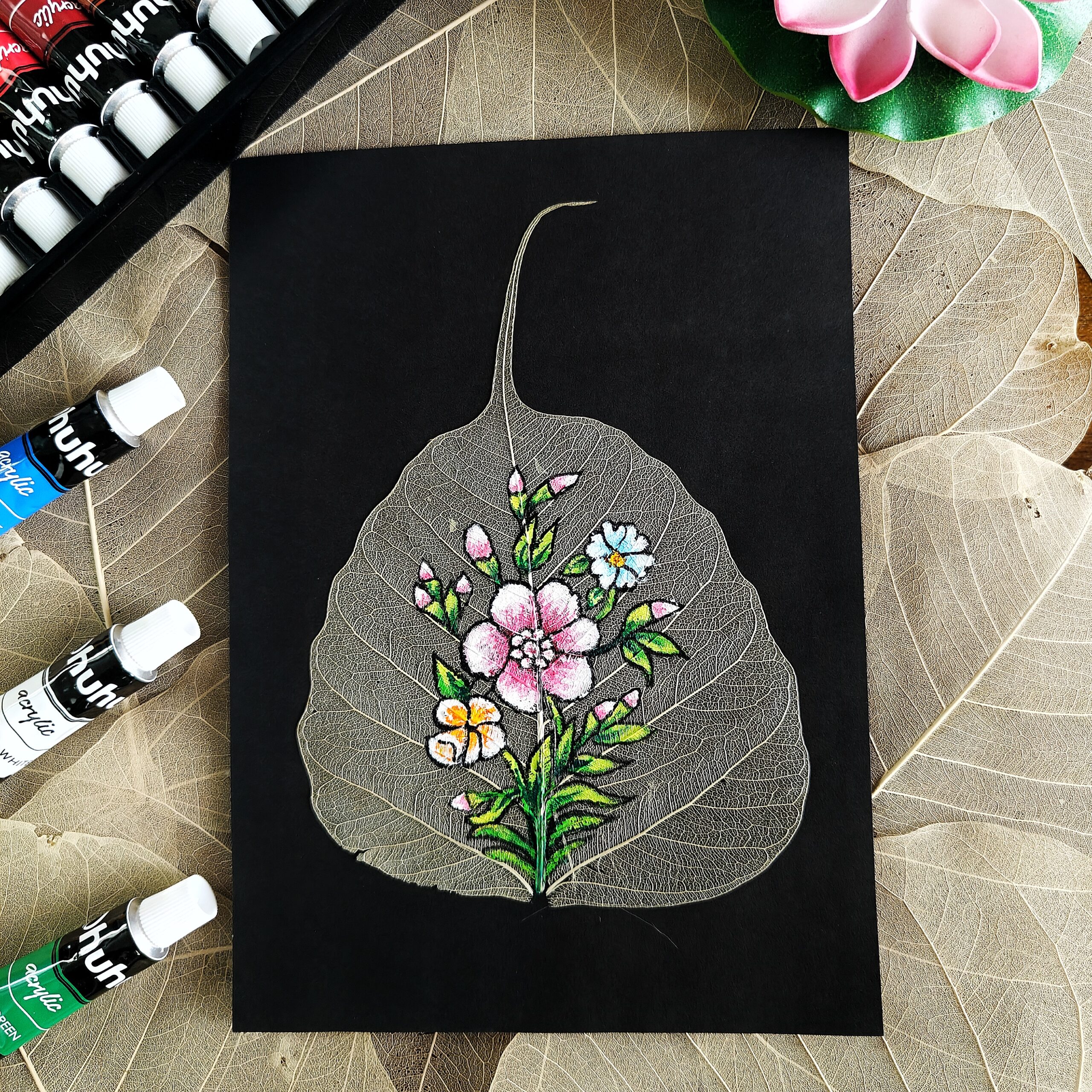 Artwork Type: Hand-painted Acrylic on Peepal Skeleton Leaf