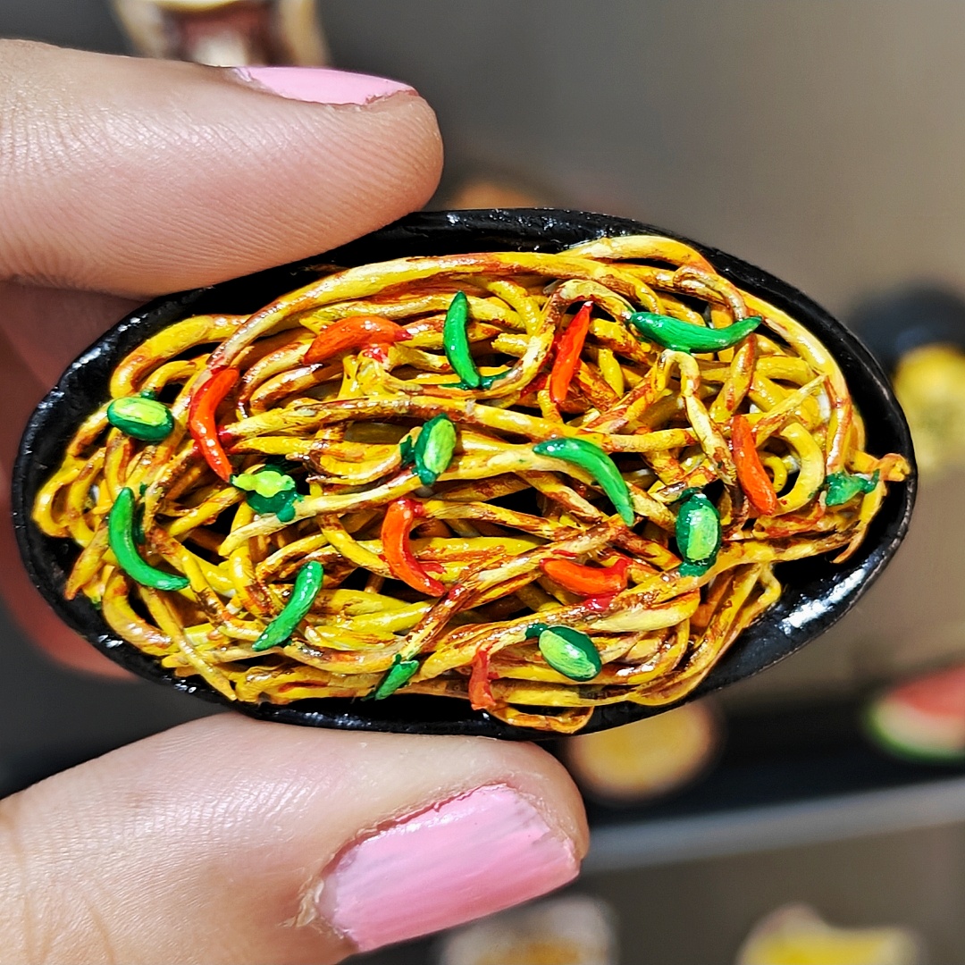 Whether you love late-night chowmein cravings or street food nostalgia, this fridge magnet is a perfect reminder of flavorful moments. Brighten your fridge, gift it to a foodie friend, or add it to your miniature art collection for a touch of tasty charm.