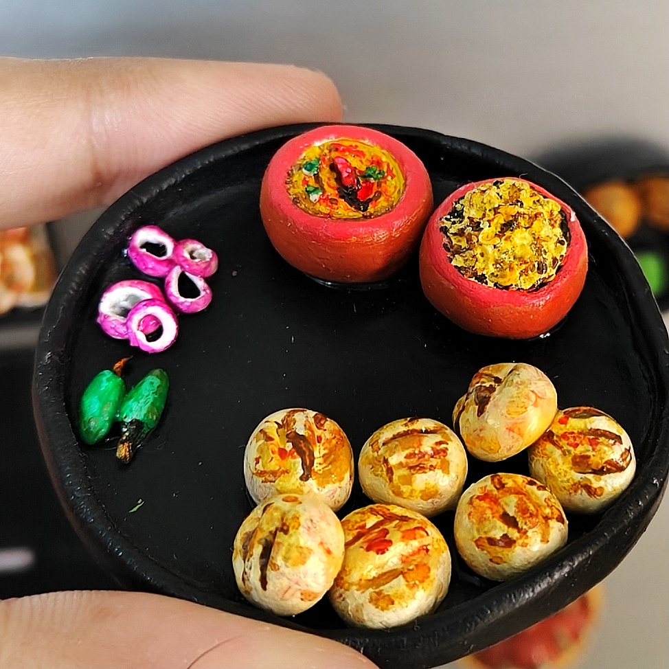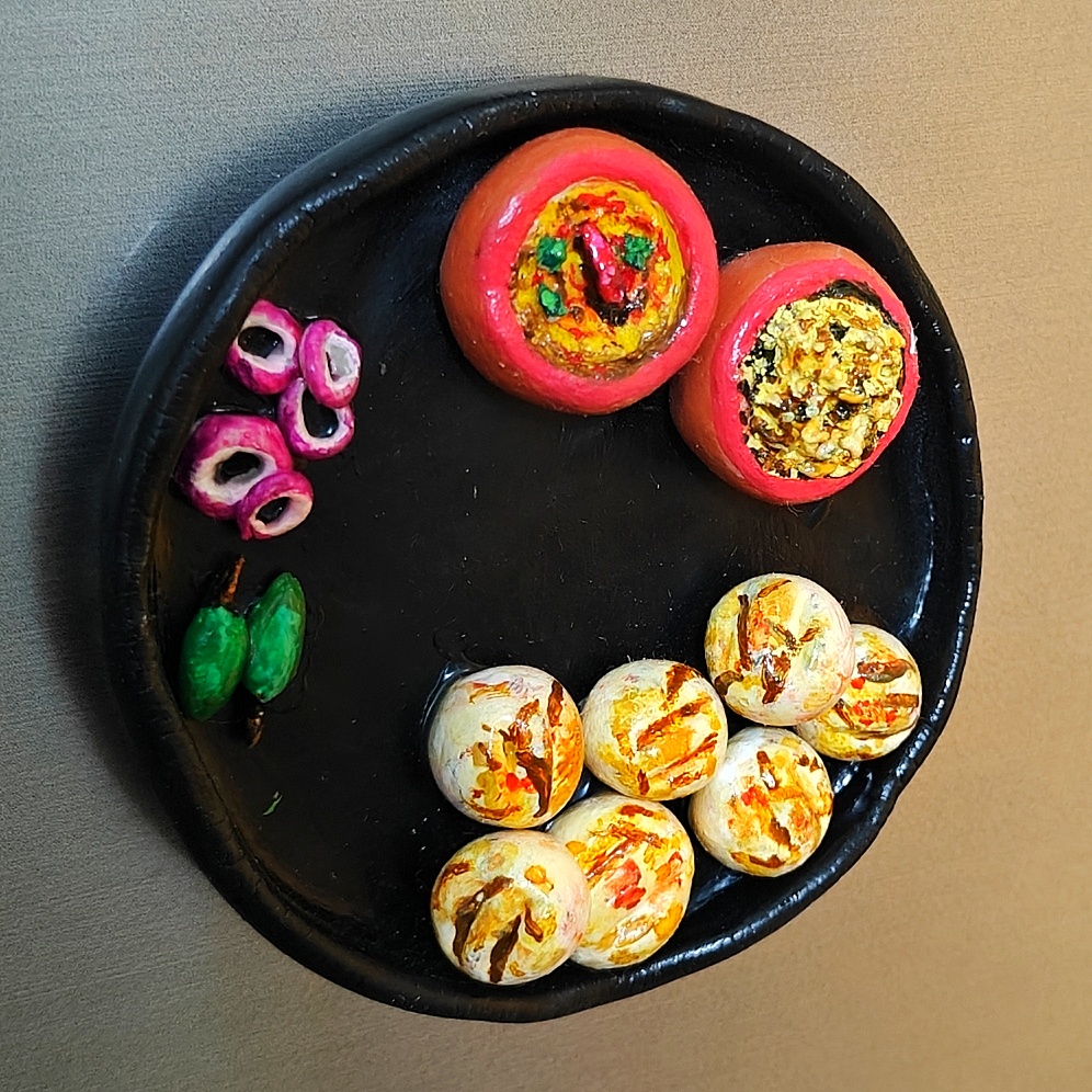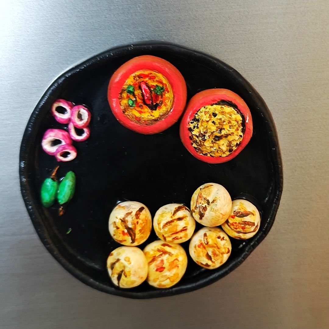 Handmade Dal Baati Churma Plate Fridge Magnet – Rajasthani Cuisine Miniature Kitchen Decor