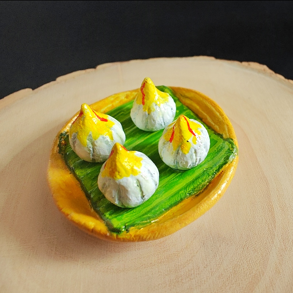 Design: Plate with 4 modaks on a banana leaf