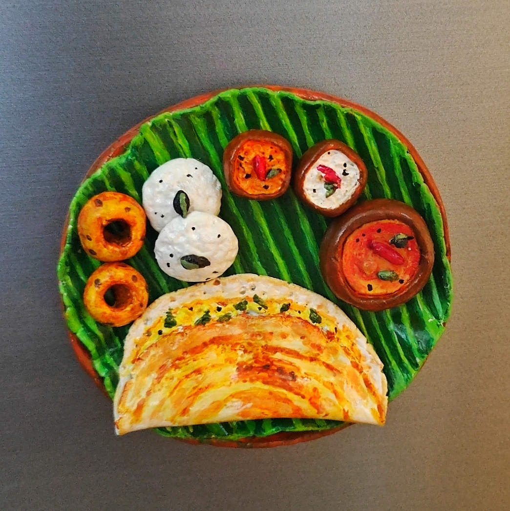 This South Indian Platter fridge magnet is a delicious reminder of India’s culinary richness. Whether you’re gifting it to a food lover or adding it to your own collection, it brings the warmth and aroma of a classic South Indian breakfast right into your kitchen.