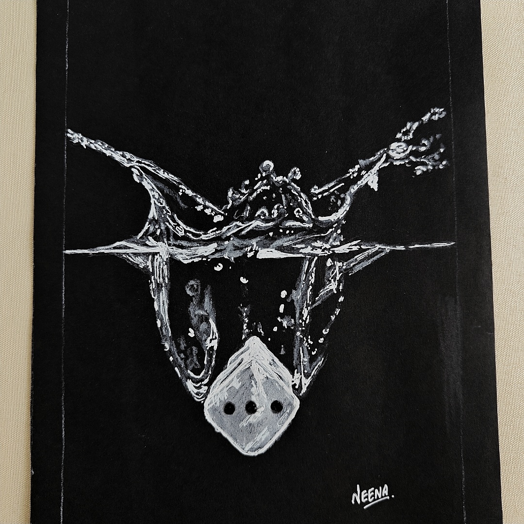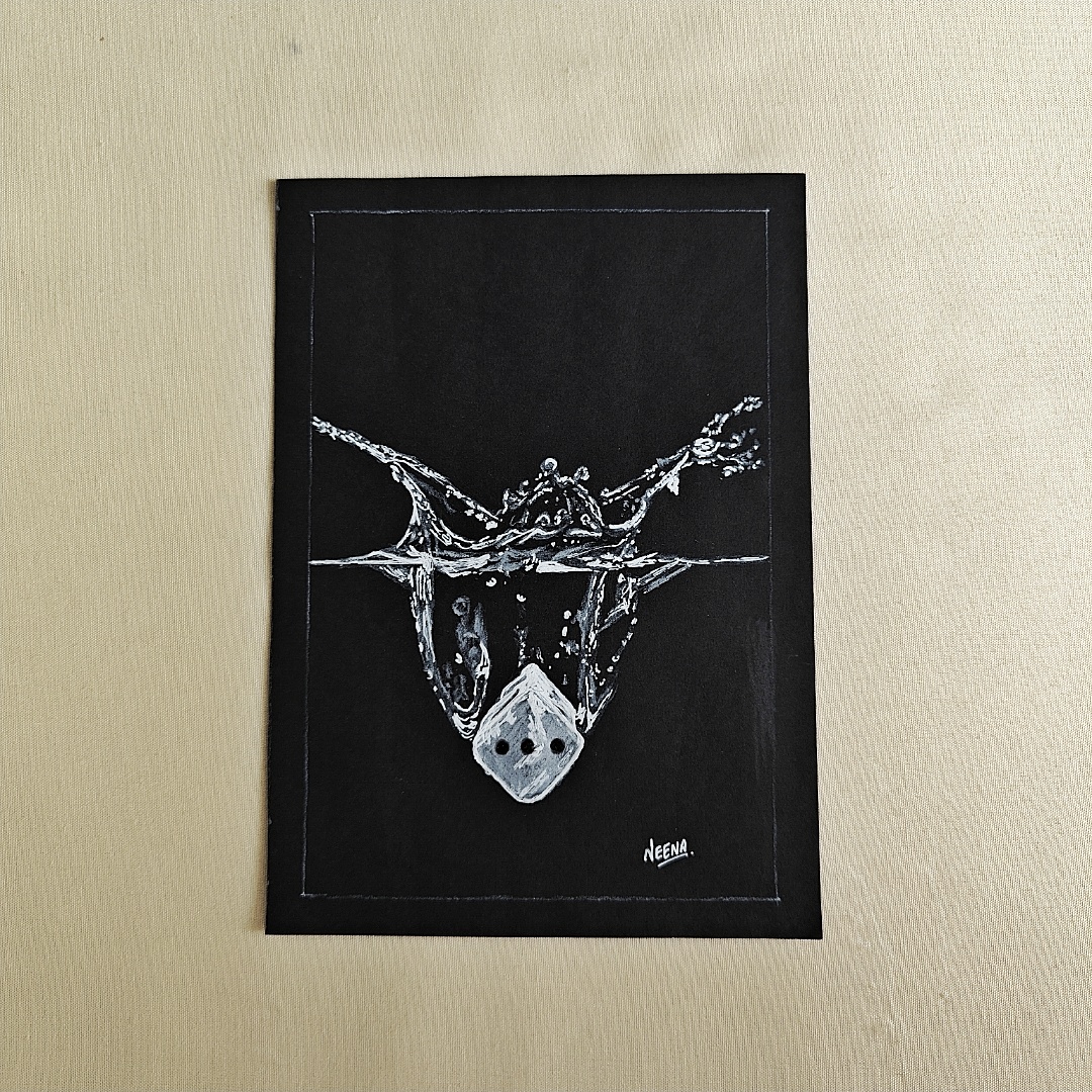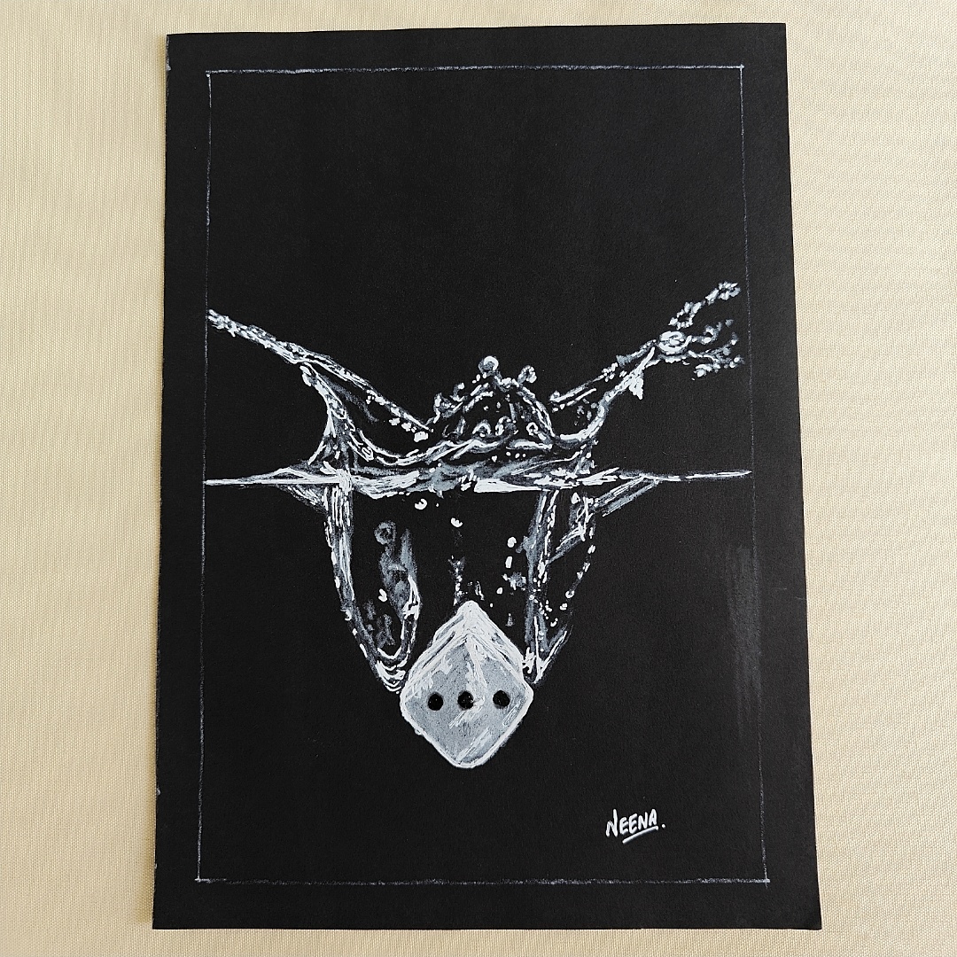 Capture the thrilling moment where fate meets fluid motion with this hyper-realistic pencil sketch, “Splash of Luck.” Set against a deep black sheet, a single dice plunges into water, freezing in time the burst of liquid energy. Every droplet, wave, and ripple is meticulously drawn in white pencil, highlighting the contrast and creating a dynamic illusion of movement. The dice—symbol of chance, risk, and unpredictability—sinks into the splash with both weight and grace, making this artwork a bold visual metaphor for life’s uncertain adventures. Compact and striking, this A5-sized piece is perfect for the desks of dreamers, risk-takers, and thinkers alike.